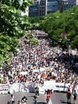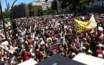 Una vez en Neptuno, los manifestantes han podido comprobar cómo decenas de miles de madrileños (150.000 según estimaron los convocantes) llenaban, no sólo la plaza, sino las calles que confluían en ella. Todas, a excepción de la Carrera de San Jerónimo, que estaba cortada y flanqueada por decenas de agentes de la Policía Nacional. La imposibilidad de llegar a las escaleras del Congreso de los diputados no impidió que los manifestantes gritaran a una las consignas que se llevan escuchando durante el último mes: “Que no nos representan”, “Esta crisis no la pagamos”, “Lo llaman democracia y no lo es”… Además de una petición de “Huelga general” en los próximos meses.