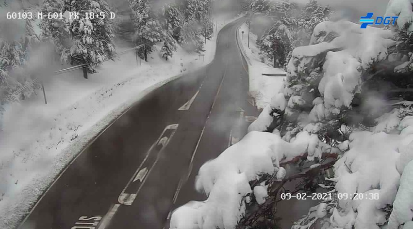 Al igual que en la tarde noche del lunes 8 y en la tarde del martes 9, en la mañana de hoy miércoles 10 de febrero de 2021 es obligatorio el uso de cadenas para circular por las carreteras M-601 y M-604.