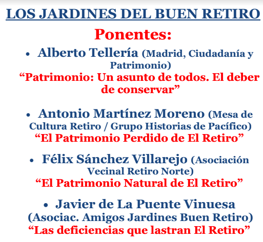 Este viernes 5 de marzo de 2021 a las 18.00 horas tendrá lugar en el centro cultural Casa de Vacas del Parque del Retiro una mesa redonda organizada por la Asociación Amigos del Retiro para hablar de los Jardines del Buen Retiro.