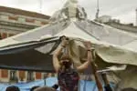 De la manifestación del 15 de mayo, convocada por “Democracia real ya”, surgió en una asamblea la idea de mantener una acampada permanente desde ese mismo momento y al menos hasta el día de las elecciones. Así, miles de personas se han ido uniendo a lo largo del día a los jóvenes que pernoctaron en la céntrica plaza madrileña hasta llenarla por la tarde. Algunos de los presentes han advertido que pese a la desautorización de concentración realizada por la Junta Electoral provincial en caso de desalojo se resistirán pacíficamente y si les echan regresan mañana.
