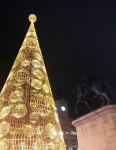 Destacan por ejemplo las bandas azules que jalonan la Gran Vía, o el belén luminoso de la Puerta de Alcalá.