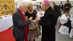 Durante la cena, recibieron la visita de Carmena y del arzobispo de Madrid, Carlos Osoro, a quienes el Padre Angel presentó a los comensales.