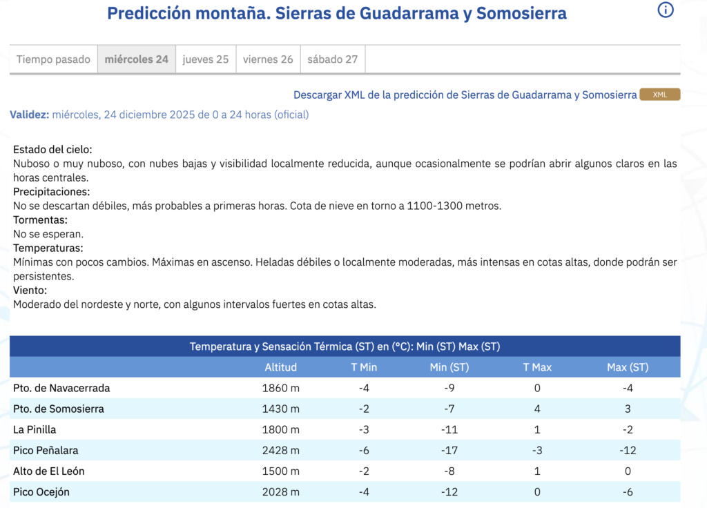 Este miércoles 24 de diciembre de 2025 los termómetros indican varios grados en negativo y la sensación térmica es de hasta -17ºC en la sierra madrileña. No saldrá el sol. Incluso se esperan lluvias. Aún así, cientos de madrileños ya están en la sierra desde antes del amanecer, por miedo a no poder aparcar.