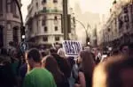 Al acercarse a la Puerta de Alcalá, muchas personas esperaban con globos y pancartas para sumarse a las centenares de personas que bajaban ya en dirección a Cibeles. No faltó algún ciudadano molesto que, ante la imposibilidad de atravesar la glorieta de la Plaza de la Independencia, pitaba desde su coche (un BMW) y su acompañante, que había salido del coche, hacía la peineta a los manifestantes.