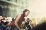 El camino hasta Manuel Becerra se hizo más rápido de lo que se había planeado y se tuvo que esperar en la plaza a que llegara el ramal que venía desde Ciudad Lineal. Cientos de personas se unieron en un “abrazo” de las columnas que, una vez juntas, tomaron con determinación la calle de Alcalá dirección Goya. Los manifestantes animaban a la gente a que se sumara a la marcha “¡No nos mires, únete!”, aunque algunos transeuntes observaban la marcha con extrañeza, sin entender lo que pasaba.
