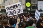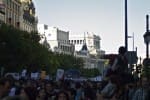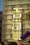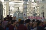 La marcha ha comenzado pasadas las 18:00 horas en la plaza de Cibeles con destino a la puerta del Sol, presidida por una pancarta que rezaba “No somos mercancías en manos de políticos y banqueros” y al grito de “No los votes”. Varios de los asistentes, principalmente jóvenes, vestían camisetas amarillas con el lema “sin casa, sin curro, sin pensión y sin miedo”, firmadas por Juventud sin futuro, y muchos otros llevaban camisetas negras con la leyenda “las calles son nuestras”. Los participantes han coreado consignas como “España escucha así es como se lucha” y han exhibido varias pancartas pequeñas alusivas a la insumisión de Islandia a reconocer su deuda.
