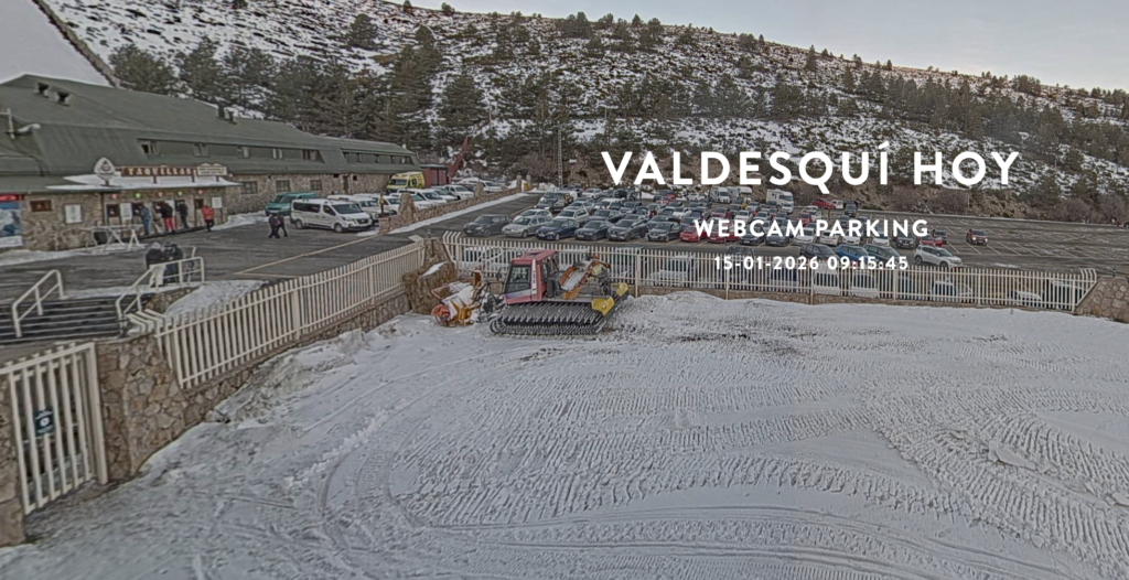 A pesar de ser jornada laborable, cientos de madrileños han subido a esquiar a Valdesquí hoy, aprovechando las nevadas de las últimas horas y la apertura de más de 11 kilómetros esquiables. La estación presenta un aspecto puramente invernal con espesores que alcanzan los 55 centímetros de nieve calidad dura, lo que ha animado a muchos aficionados a desplazarse desde la capital para disfrutar de las 14 pistas abiertas. La jornada de hoy se desarrolla con temperaturas bajo cero y una ocupación notable para un lunes, facilitada por el funcionamiento del servicio de bus lanzadera desde Cotos, que permite un acceso ágil ante la gran afluencia de vehículos en el puerto.