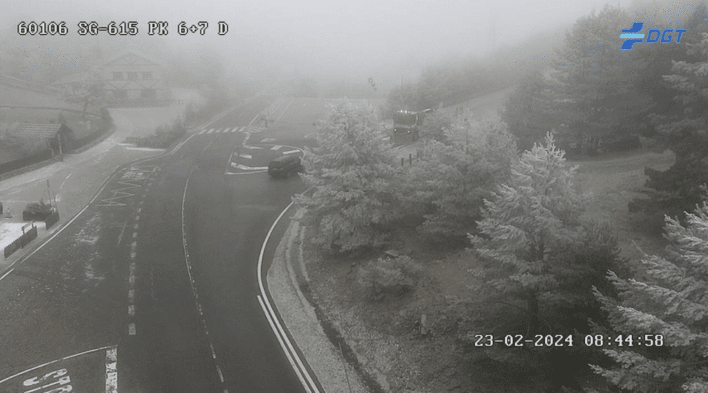Este viernes 23 de febrero de 2024 a primera hora de la mañana una fina capa de nieve cubre los árboles de la Sierra de Madrid. La noche del jueves la Comunidad de Madrid activó la alerta amarilla por nevadas, tras el aviso de nevadas emitido por la Agencia Estatal de Meteorología AEMET y las máquinas quitanieves están preparadas para actuar en caso de cuajar la nieve en las carreteras de montaña.