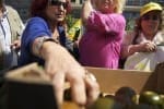 Tras abrirse la veda de forma puntual a las 11.30h, el asalto a los puestos por parte de los vecinos conllevó sonrisas y algún que otro reproche: “¡Ponme pimientos!”, gritaba un señor; “¿No tienes cerecitas?”, preguntaba otra señora. Y mientras en el exterior la gente se agolpaba para coger lo máximo posible, desde dentro los agricultores llamaban a la calma con un, muy repetido, “¡Hay para todos, tranquilos!”.