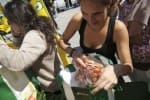 Finalmente, tantas eran las manos a llenar y tan pocas las manos a repartir, que varios de los periodistas gráficos acostados en el interior de la carpa han terminado colaborando con la repartición de los vegetales.