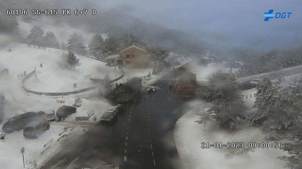 Hoy sábado 21 de enero de 2023, primer sábado de nieve del año, en la cima de Madrid hay una sensación térmica de -18ºC, cielos nubosos, visibilidad reducida, viento norte y lluvia. Aun así, a las 09.00 horas la sierra ya está llena de madrileños colapsando los aparcamientos de montaña, donde ya hay atascos.