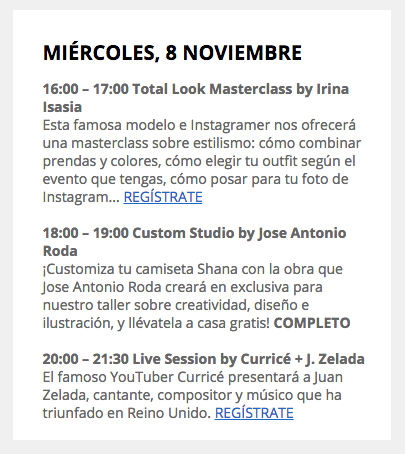 Se presentarán marcas y vendedores españoles, habrá charlas con famosos influencers del mundo de la moda, sesiones de música en directo y talleres gratuitos sobre creatividad, diseño e ilustración, para los cuales se requiere inscripción a través del email registro@aliexpress.com.