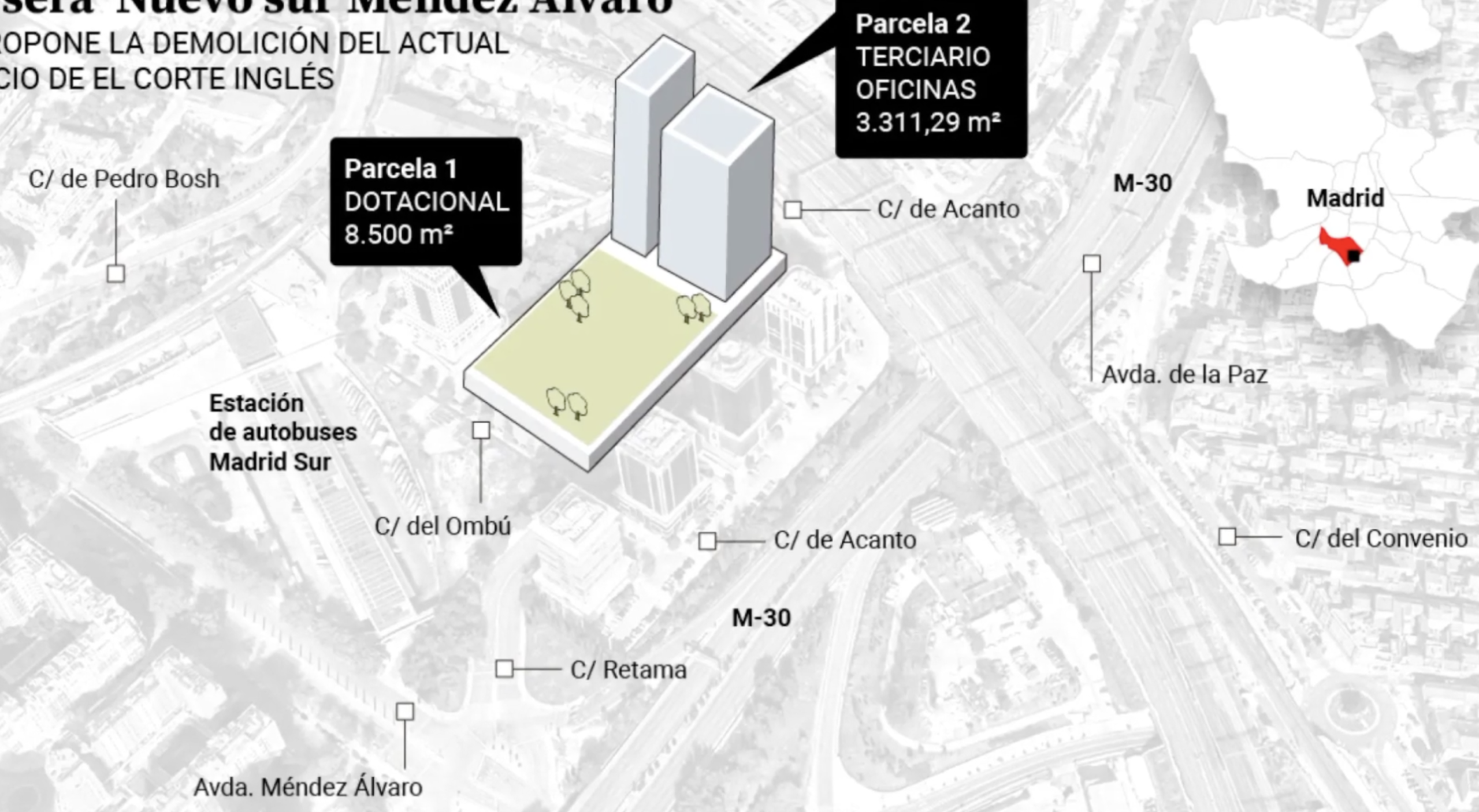 El proyecto que redefinirá el “skyline” del sur de la capital ya tiene vía libre oficial. El Ayuntamiento de Madrid, a través de su Junta de Gobierno, aprobó el pasado 15 de enero de 2026 el convenio que permite ejecutar la transformación de la parcela de 11.811 metros cuadrados donde se ubicaba el emblemático centro comercial de El Corte Inglés en Méndez Álvaro.