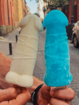 La Pollería de Chueca que en otoño revolucionó la repostería del centro de la capital inventado los ‘Pollofres’ -gofres con forma de pene-, ha inventado un postre refrescante que está triunfando durante la primera ola de calor de la capital: los ‘Pollolos’, polos con forma de pene de 17 centímetros.