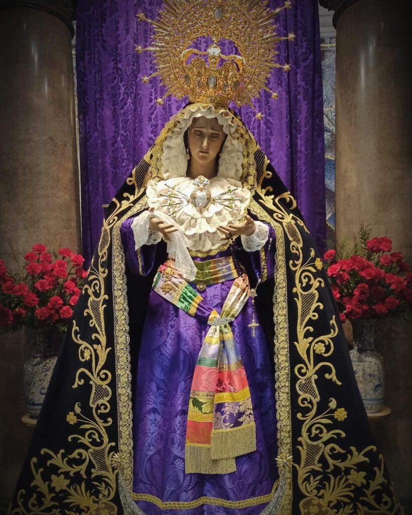 La Virgen María seguía de cerca los pasos de Jesús en su Pasión. De este modo amanece ataviada en el camarín, la sagrada imagen de nuestra titular mariana, Nuestra Señora de los Dolores en su Soledad, para la celebración, en este tiempo de Cuaresma, de la festividad del primer viernes de marzo.