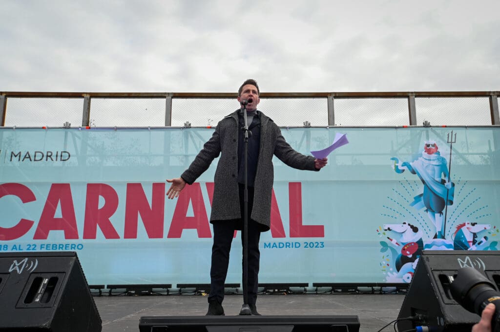 El tradicional pasacalle de carnaval ha regresado tras dos años de ausencia este sábado 18 de febrero a las 12.00 horas. Ha discurrido entre el icónico Puente Perrault del Parque Madrid y hasta la explanada negra, donde estará instalado el escenario en el que el intérprete madrileño Fernando Gil leerá el tradicional pregón.