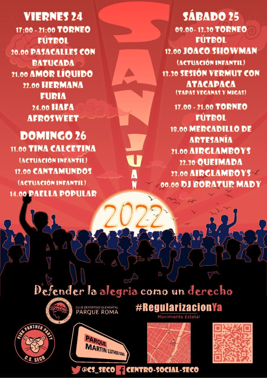 El viernes 24, sábado 25 y domingo 26 de junio de 2022 el distrito de Retiro celebra sus fiestas de San Juan. Este año, la junta municipal ha preparado un amplio programa de actividades con conciertos a cargo de grupos tan conocidos y asentados en el panorama musical como Tam Tam Go, Tennessee o el Regreso de la Década, además de pasacalles, teatro y actividades infantiles, torneos deportivos, campeonato de dominó, talleres y mucho más.