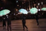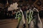 Tras el hielo, el viaje encontró la tormenta. Una gran nube hinchable sobrevolará el desfile seguida de 20 nubes más pequeñas y 20 rayos centelleantes, manejados por 40 Voluntarios por Madrid, mientras un pelotón de 30 paraguas luminosos multicolor -Umbrellas’s Project de la compañía Cirque Bijou¬- resguardará a los espectadores de una lluvia de confeti plateado.