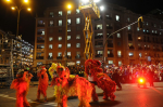 El viaje real llevó después a los espectadores hasta China. Patacas, un gran dragón chino, sobrevoló la Castellana y el paseo de Recoletos de la mano de la compañía francesa de teatro de calle Plasticiens Volants. Abrió paso a los representantes de la comunidad China en Madrid, que participa por primera vez en la Cabalgata con la tradicional Danza del León, y a treinta niños del colegio de la Asociación China de España que desfilarán iluminando el recorrido con los tradicionales farolillos rojos.
