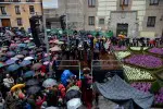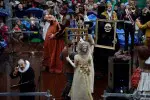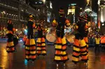 Nueve compañías de teatro de calle y música dieron color a una noche lluviosa, en la que se recreó la época de los Austrias y los Caballeros Engolados de El Greco abrieron un pasacalles al que siguieron desde los extraños insectos y las criaturas más feroces de los cuadros de El Bosco, pasando por las Meninas de Velázquez, hasta los mundos de color de Kandisnky, Andy Warhol o el imaginario de Picasso.