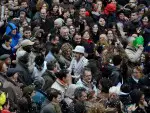 L. Torres.- Cientos de madrileños ataviados con paraguas disfrutaron este sábado 1 de marzo de 2014 del comienzo del Carnaval en la Plaza de la Villa, donde el cómico Álex O’Dogherty pronunció el tradicional pregón, y en las calles O’Donnell y Alcalá, donde presenciaron el desfile que transcurrió entre el Parque del Retiro y la Plaza de Cibeles.