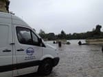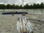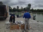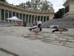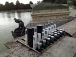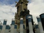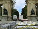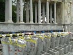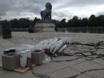 Así se prepara el espectáculo en la zona del monumento a Alfonso XIII, entre las columnas y las escaleras del estanque: