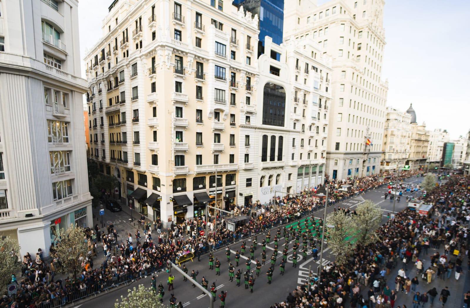 Aunque el día de San Patricio, patrón de Irlanda, se celebra oficialmente el próximo martes 17 de marzo, Madrid ha decidido adelantarse este sábado con un despliegue sin precedentes que ha consolidado a la capital como uno de los epicentros mundiales de esta festividad. La Gran Vía se ha vestido de gala —y de verde esmeralda— para acoger una cita que ha superado todas las expectativas de asistencia y participación.