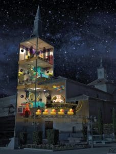 Este espectáculo de luz y sonido se representa sobre la fachada de la iglesia de la Plaza Mayor de la localidad.