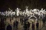 En el paseo por Luna de Octubre el visitante también puede toparse con ‘Gráficos Paramétricos’, un trabajo de Javier Riera que se basa en proyecciones de luz de forma geométrica realizadas directamente sobre la vegetación y el paisaje, en el interior del Jardín Botánico, o con un ramo de peonías gigantes que se ilumina con mil luces y reflejos, en el lateral Jardín Botánico.