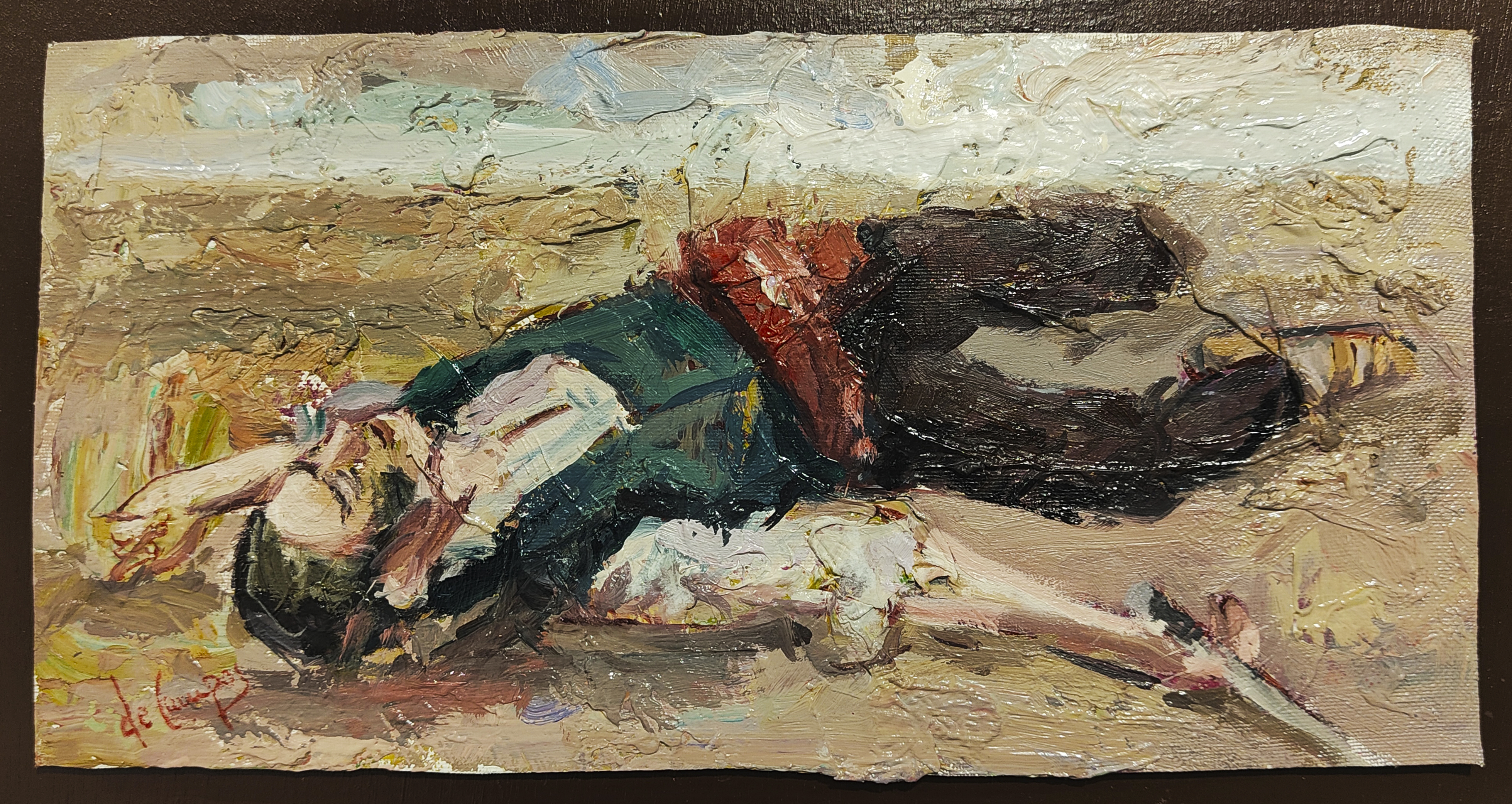 DdC: Mi paleta tiene influencia de los distintos países en los que he vivido o a los que he viajado, sobre todo de la luz y el color de esa parte ecuatorial del planeta, Hispanoamérica. Al mismo tiempo no todo es luz, no es un impresionismo, sino que predominan los grises, en coherencia con el hilo conductor de la obra de esta muestra: la tragedia, tragedia no trágica sino heroica, como la misma vida de ellos, y la tragedia es gris.