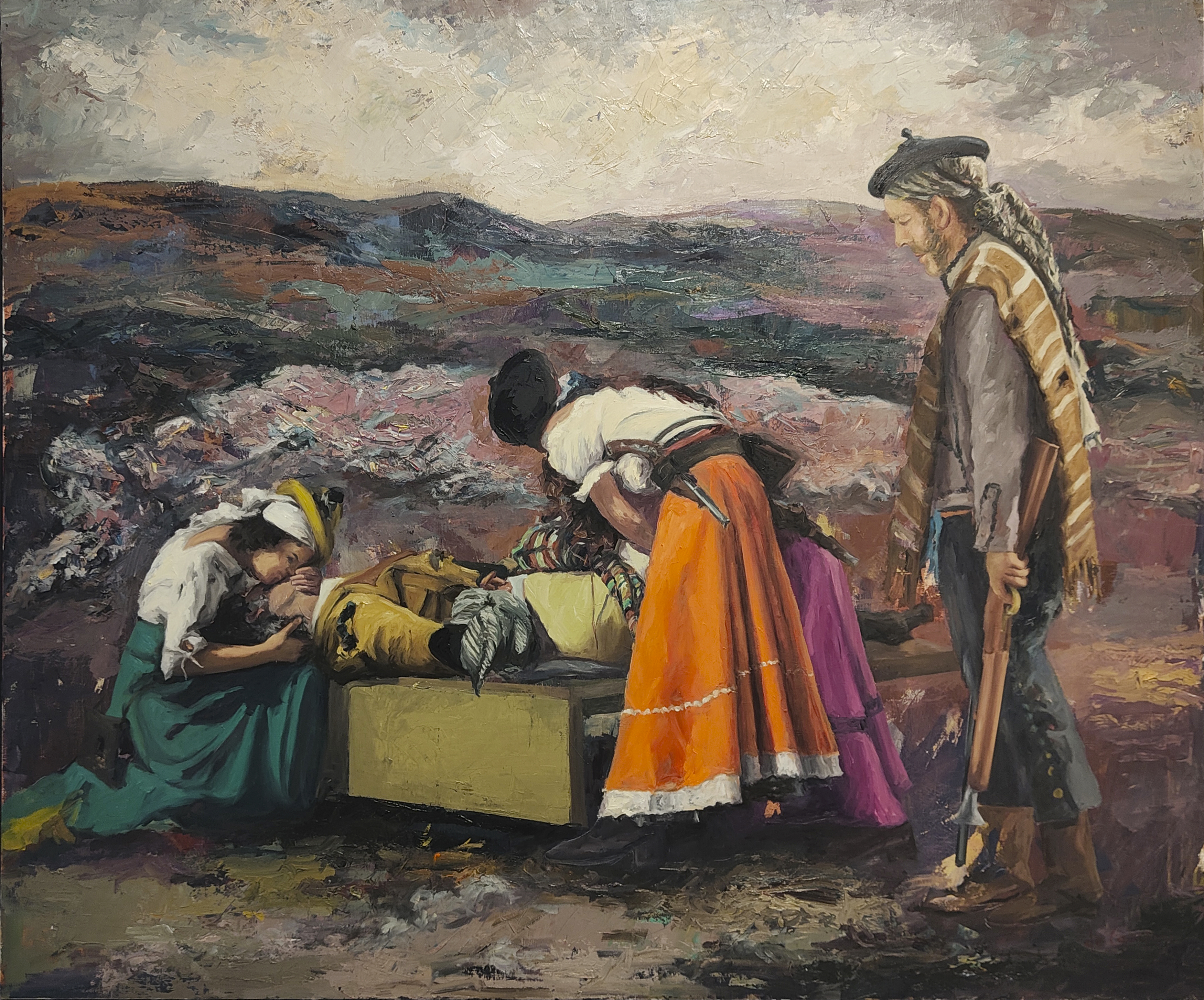 DdC: La tragedia es inherente a nuestra historia. Goya con sus pinturas negras lo describió magistralmente. Yo no quería hacer con las pinturas de los bandoleros una pintura costumbrista como se hizo en el siglo XIX sino pintar esa parte que no se ha hecho, su lucha por unos derechos sociales; en cierto modo yo diría que el bandolerismo fue una forma de subsistencia ejercida por los marginados de una sociedad. En ningún momento hay sangre, en sentido literal, tampoco una obsesión. La obsesión es rescatarlos del olvido de una manera pictórica, pero con un mensaje de esperanza.