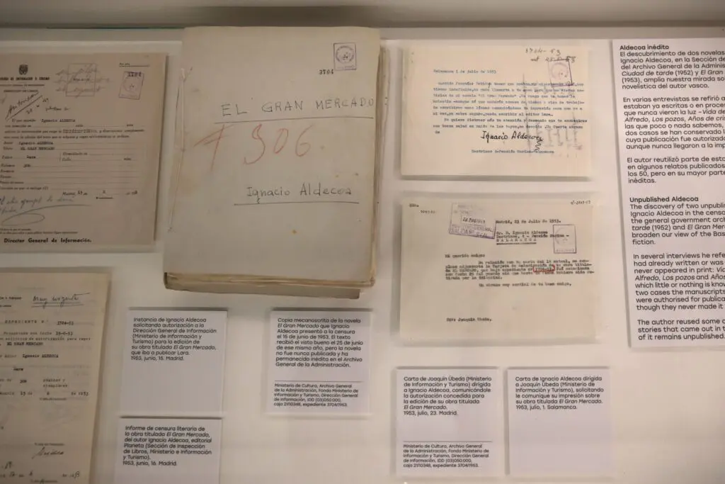 La diputada foral de Cultura de Álava Ana del Val ha desvelado en la inauguración del 18 de diciembre de 2025 dos textos inéditos que el escritor había enviado para su evaluación en 1952 y 1953 y que nunca fueron publicados en su integridad. Textos que permanecían escondidos, custodiados en la Sección de Censura del Archivo General de la Administración de la biblioteca, y han sido localizados durante las tareas de búsqueda de documentos para organizar esta muestra homenaje a Ignacio Aldecoa que, como Ana del Val recuerda, “se fue demasiado pronto, a los 44 años de edad” y este año (24 julio) habría cumplido los cien años.