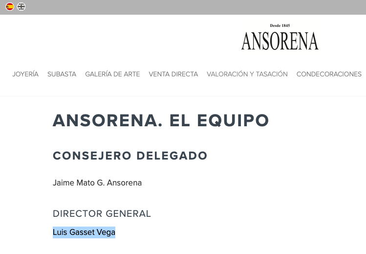Se ha enamorado del ejecutivo Luis Gasset Vega, director general de la Galería Ansorena de subastas de joyas y arte del distrito de Retiro.