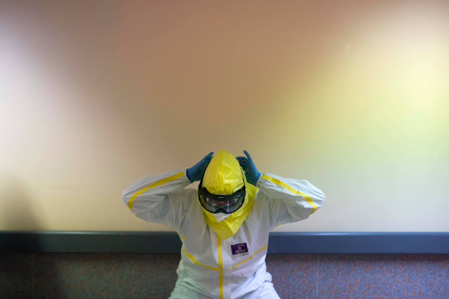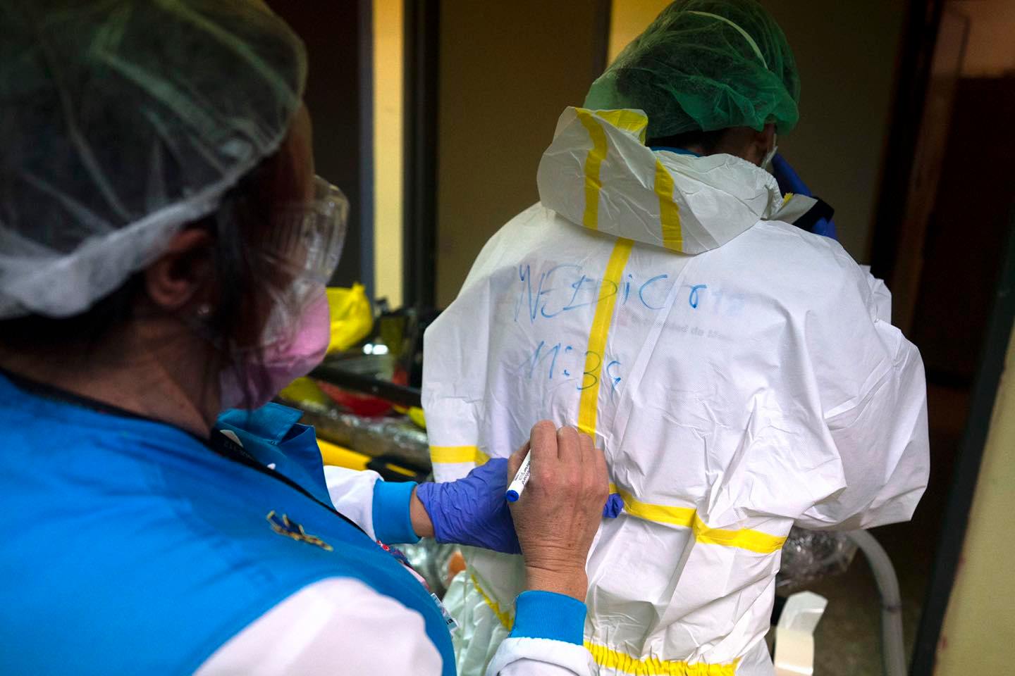 Los profesionales del SUMMA 112, especializados en manejo del riesgo biológico, ha compartido este jueves 9 de abril de 2020 unas fotos en las que se les ve trasladar a los pacientes en estado crítico con Covid-19 o sospecha al hospital.