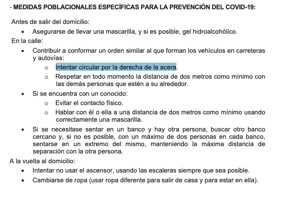 Y, como medidas más particulares, circular por la derecha de la acera, evitar el contacto físico cuando se encuentre con un conocido, no utilizar los ascensores, cambiarse de ropa y ducharse al llegar a casa, además de limpiar todo lo que se haya llevado consigo: gafas, teléfono móvil, llaves…