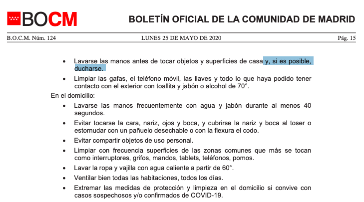 Con motivo de la entrada de la Comunidad de Madrid a la Fase 1 este lunes 25 de mayo de 2020, la Consejería de Sanidad ha publicado en el Boletín Oficial de la Comunidad de Madrid una orden elaborada por Salud Pública con recomendaciones que deben seguir los madrileños.