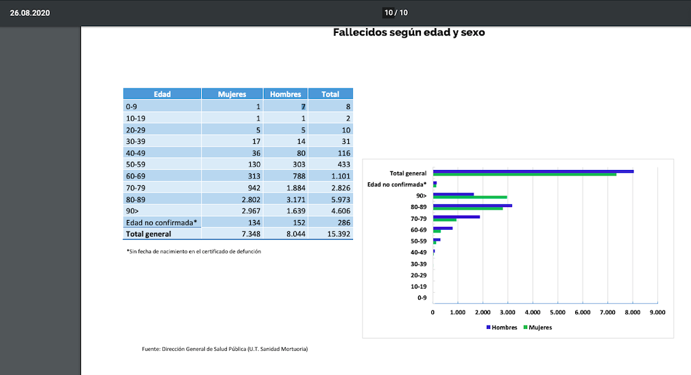 La cifra no había subido hasta este miércoles día 26, cuando el gobierno regional informa de que, en total desde el comienzo de la pandemia han muerto 7 niños de 0 a 9 años y una niña de 0 a 9 años, lo que supone que un niño ha muerto entre el 25 y el 26 de agosto.