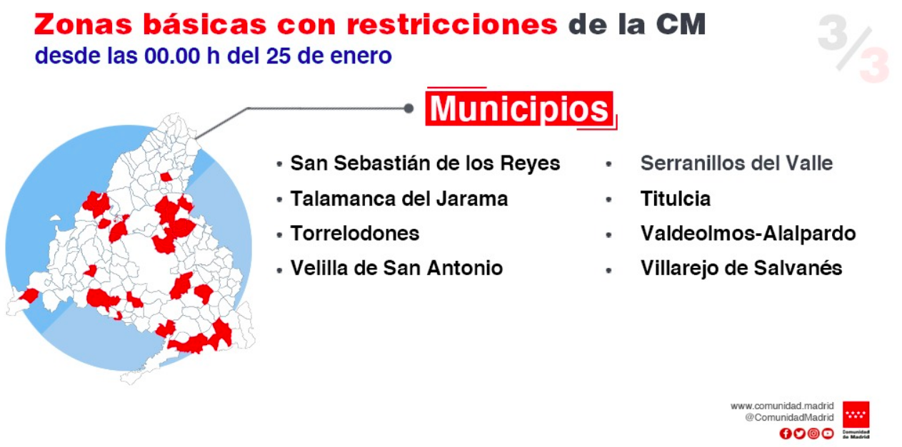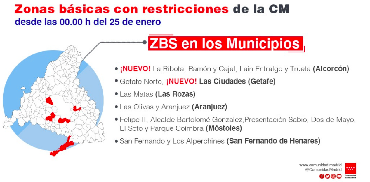 A partir del lunes estarán confinadas 56 zonas básicas de salud y 25 municipios. Hasta ahora se encontraban en esta situación 47 zonas de salud y 19 localidades.