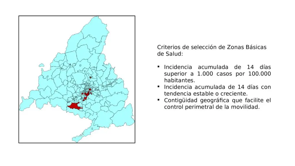 La Comunidad de Madrid restringirá a partir del lunes 21 de septiembre de 2020 la movilidad en las 37 zonas básicas de salud más afectadas por el Coronavirus de la región (26 de ellas están en la capital) para evitar que se propague a otras áreas básicas.