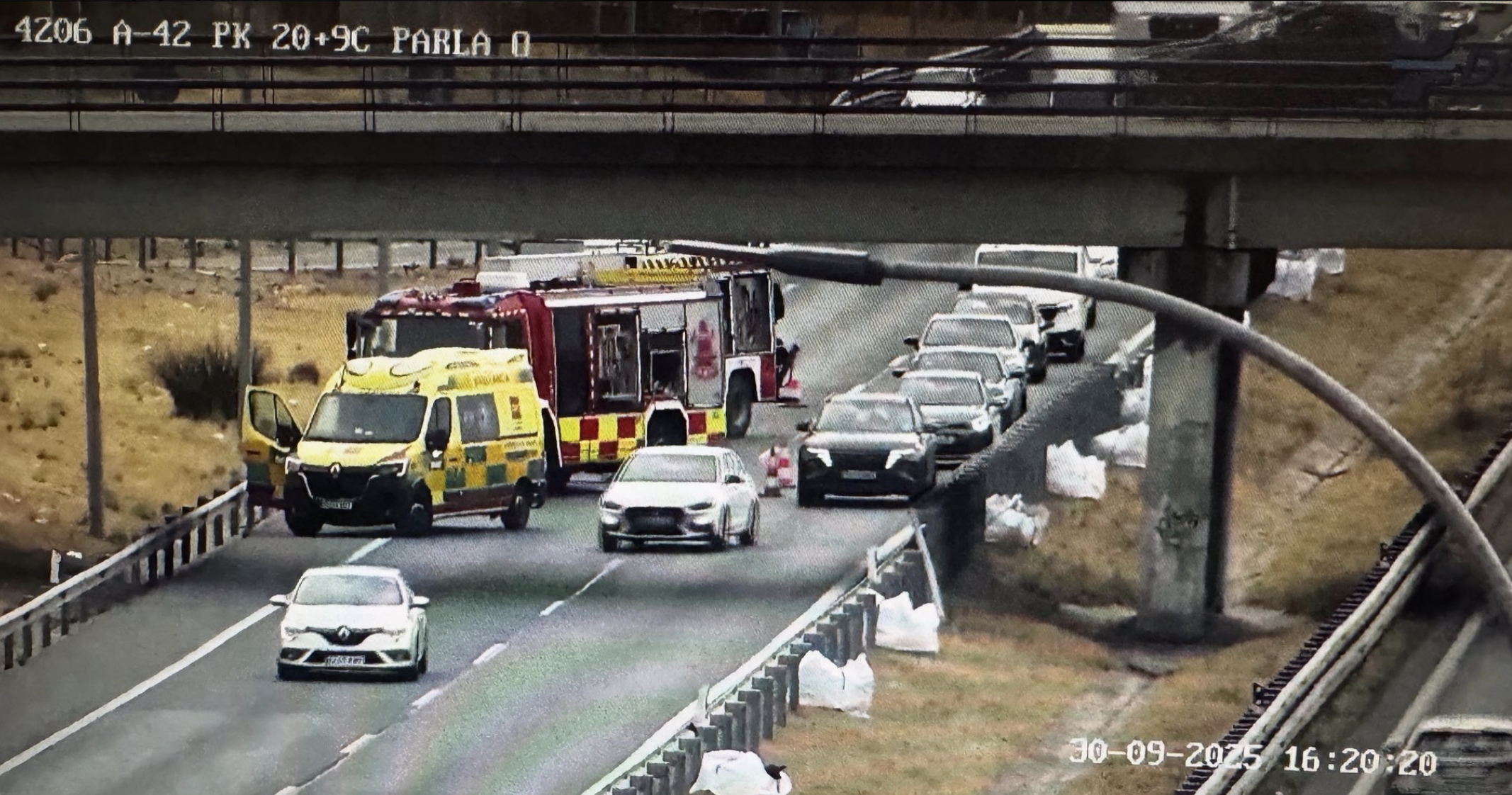 Este martes 30 de septiembre a las 16.20 horas varios coches se han visto implicados en un accidente en la A-42. Afortunadamente no ha habido que lamentar heridos de gravedad. El accidente múltiple ha provocado un gran atasco.