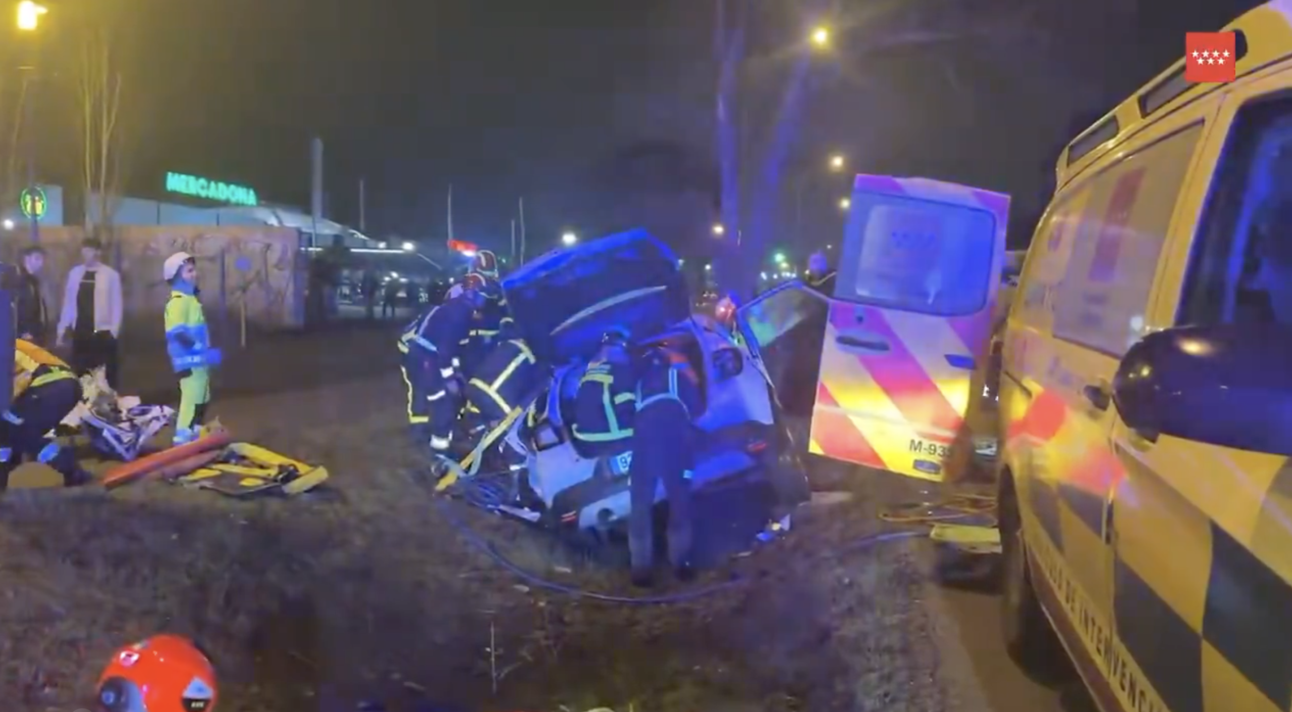 El siniestro ha movilizado un importante dispositivo de emergencias. A consecuencia del impacto, el conductor y único ocupante del turismo quedó atrapado mecánicamente en el interior del vehículo, lo que obligó a la intervención urgente de los Bomberos de la Comunidad de Madrid. Los efectivos de rescate tuvieron que realizar labores de excarcelación para liberar a la víctima de entre los restos del coche.