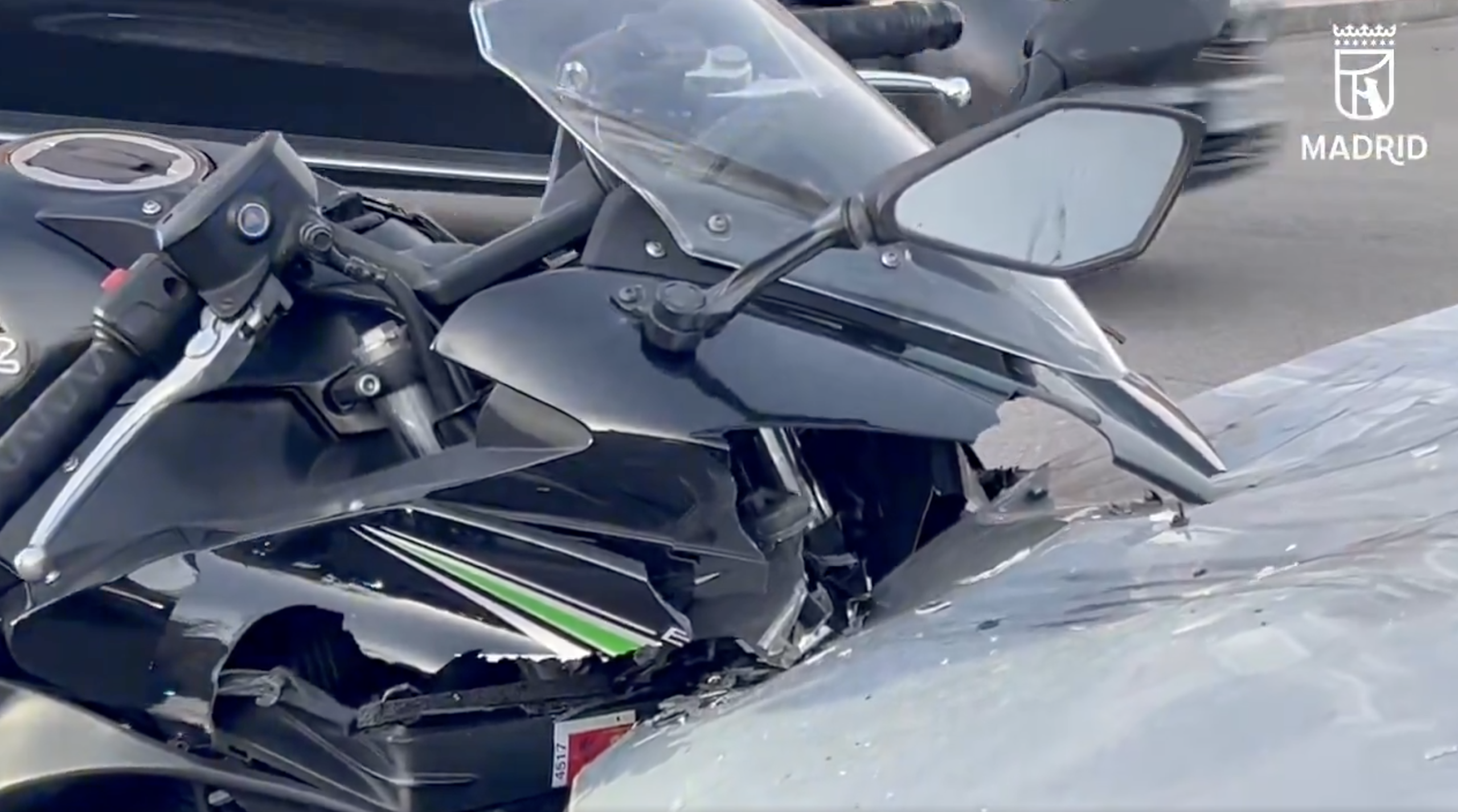 Según han informado fuentes de Emergencias Madrid, el suceso tuvo lugar alrededor de las 19:00 horas de este lunes en la intersección entre la avenida de Niza y la calle Julia García Boután. La violencia del impacto fue tal que la parte delantera de la moto quedó completamente incrustada en el frontal del coche.