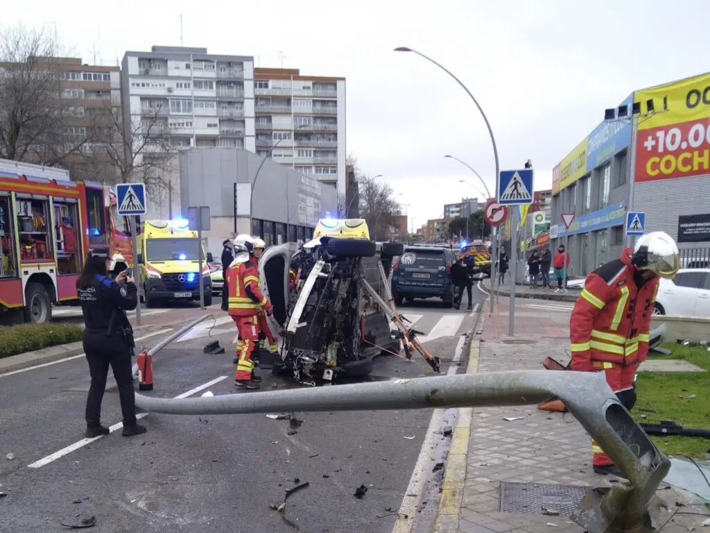 Este miércoles 4 de febrero de 2026 un coche ha volcado junto a un paso de cebra elevado en Fuenlabrada y su conductor ha resultado herido leve.