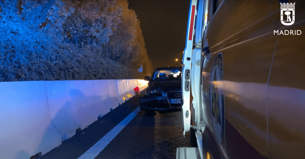Este sábado 3 de diciembre de 2022 a las 18.15 horas un motorista de 29 años que portaba una mochila de Glovo ha resultado herido grave al chocar contra un coche en el kilómetro 13 de la M-30, cuando se disponía a tomar la salida a Legazpi.