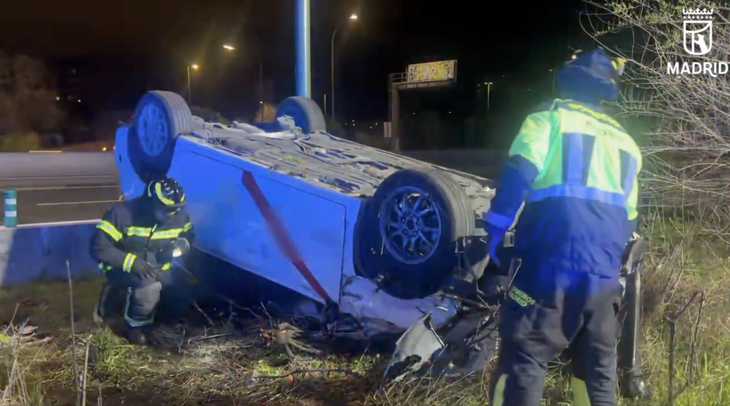 Efectivos de Bomberos del Ayuntamiento de Madrid han acudido de inmediato al punto del accidente en la M23 para proceder a las labores de rescate del taxista y asegurar el vehículo siniestrado para evitar riesgos adicionales a otros conductores. Una vez que los bomberos han logrado liberar al hombre de unos 50 años de edad los sanitarios de Samur Protección Civil han procedido a su estabilización en el lugar confirmando que a pesar de la espectacularidad del vuelco solo presentaba contusiones de carácter leve.