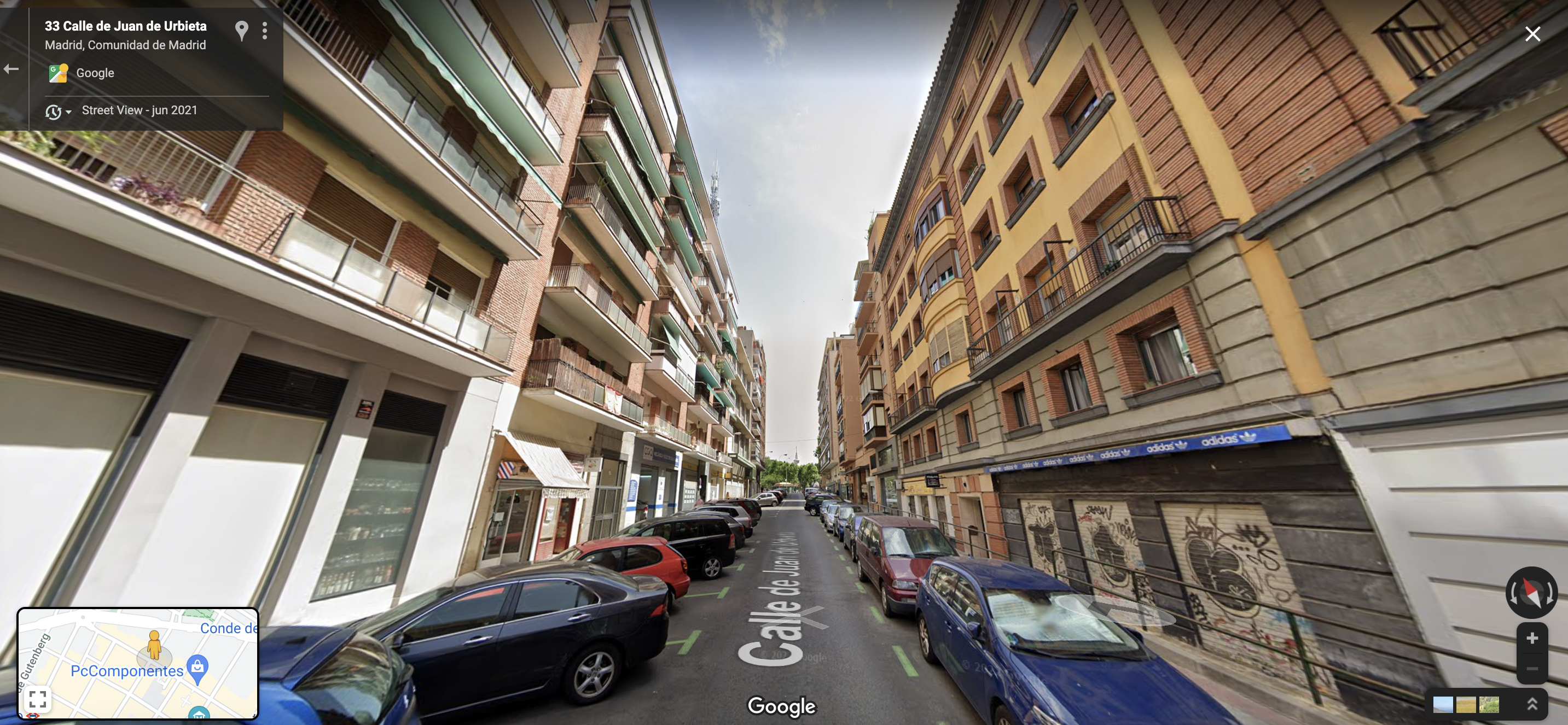 Este lunes 6 de junio de 2022 a las 11.00 horas la calle Juan de Urbieta del distrito de Retiro está cortada al tráfico por el vuelco de un camión pluma a la altura del número 33 de esta calle, frente a la oficina de Correos.