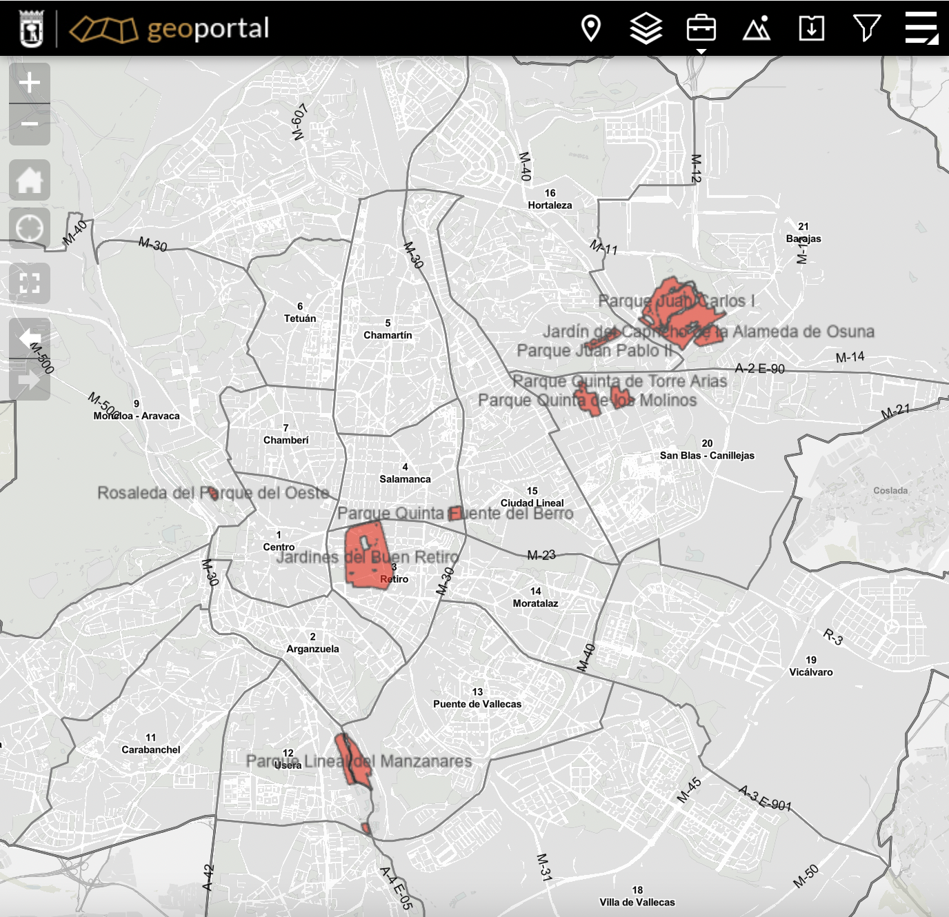 - Parques con zonas de acceso restringido: Madrid Río, Casa de Campo.