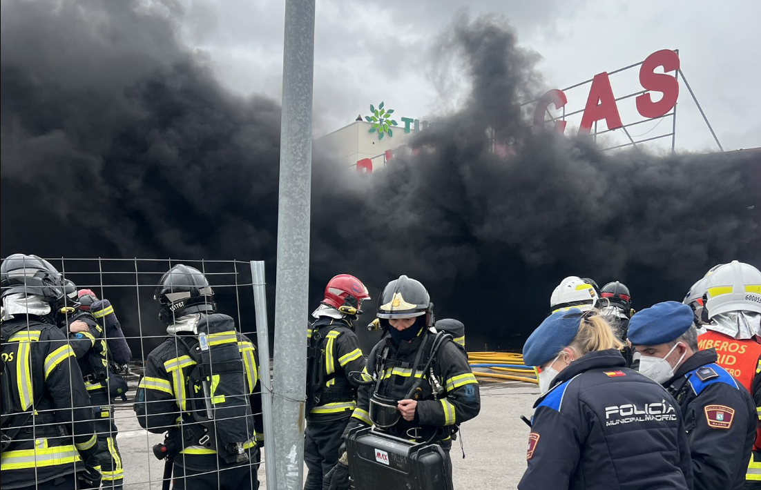 A esta hora, las labores de extinción continúan siendo complejas. Según informa Emergencias Madrid, los bomberos centran sus esfuerzos en controlar la propagación del fuego, ya que existe un alto riesgo de que la cubierta de la nave pueda colapsar debido a las altas temperaturas alcanzadas.