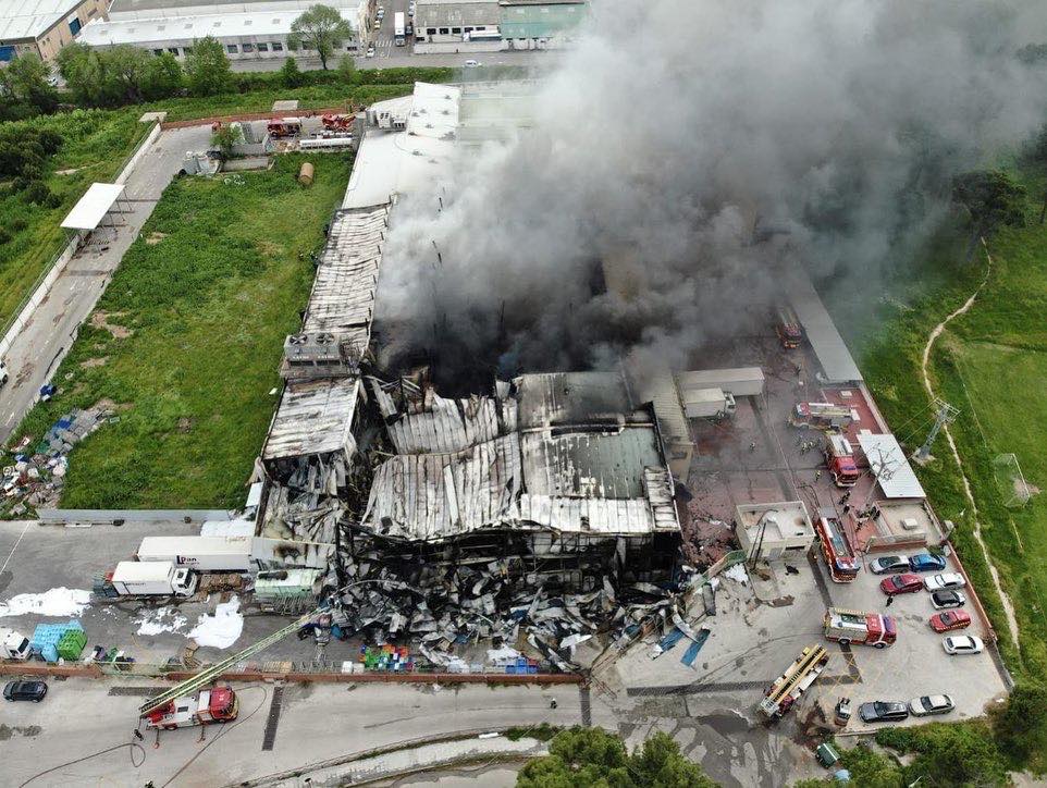 Un total de 60 empleados han sido evacuados  del matadero incendiado y los bomberos han rescatado a 40 cerdos que iban a ser sacrificados cuando se originó el incendio.