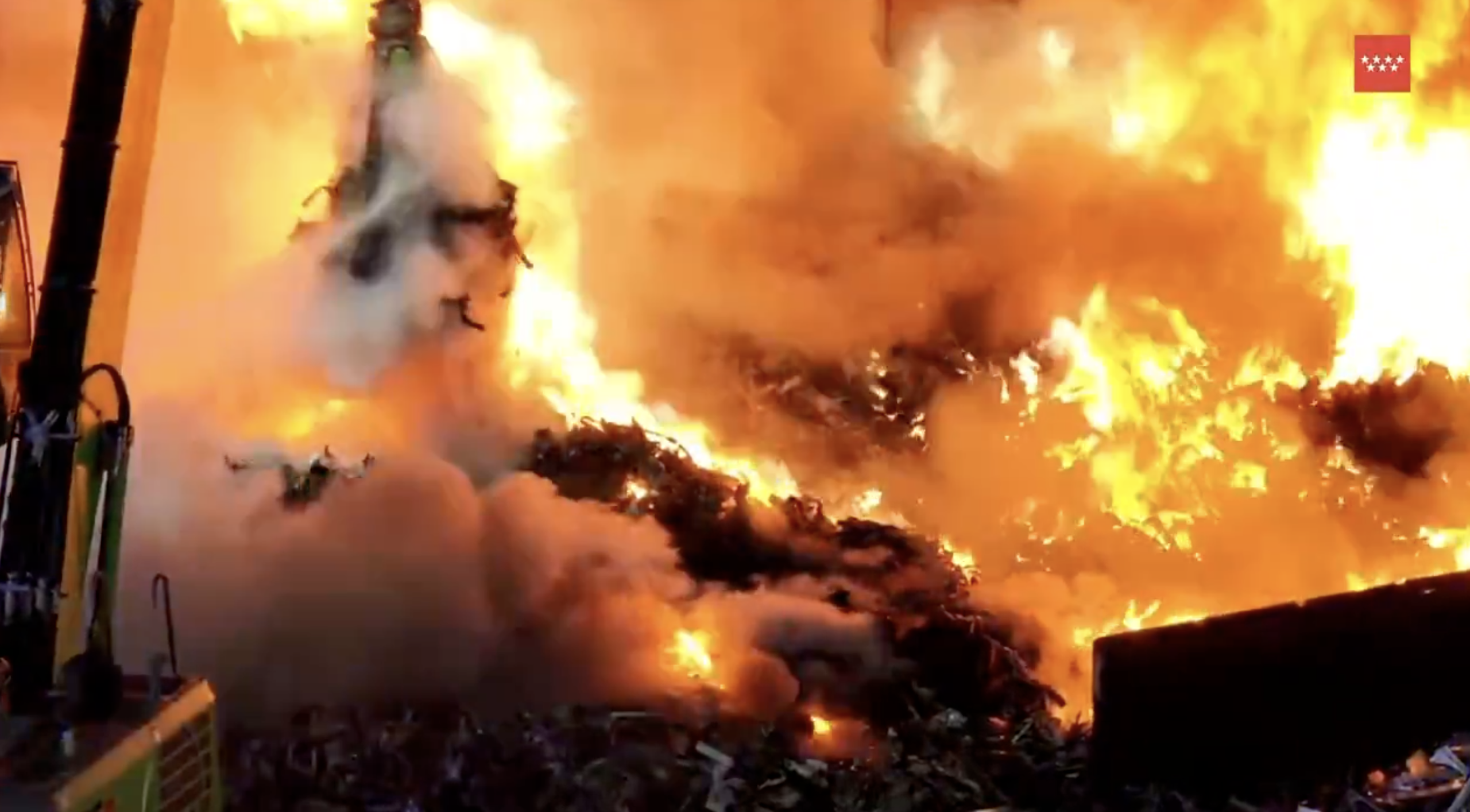 Hasta el lugar se han desplazado un total de 12 dotaciones de Bomberos de la Comunidad de Madrid, que trabajan intensamente en las labores de extinción. Según han informado fuentes de emergencias, las llamas han afectado a dos amontonamientos de residuos metálicos que suman un volumen aproximado de 1.500 metros cúbicos.
